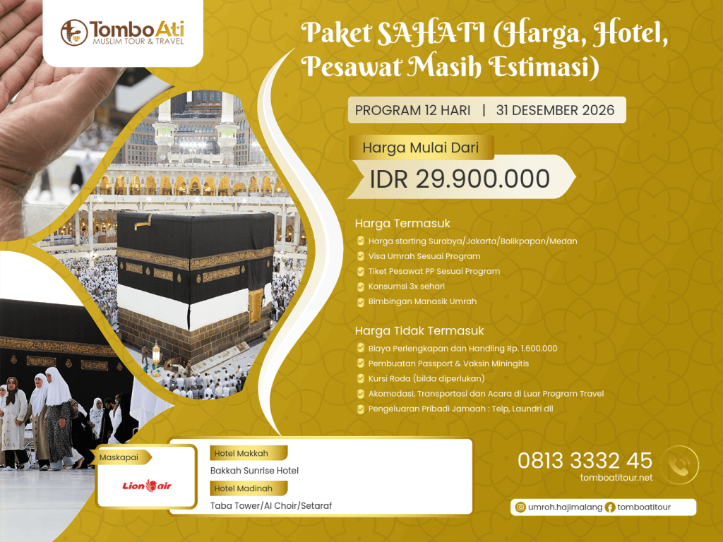 Paket SAHATI (Harga, Hotel, Pesawat Masih Estimasi)